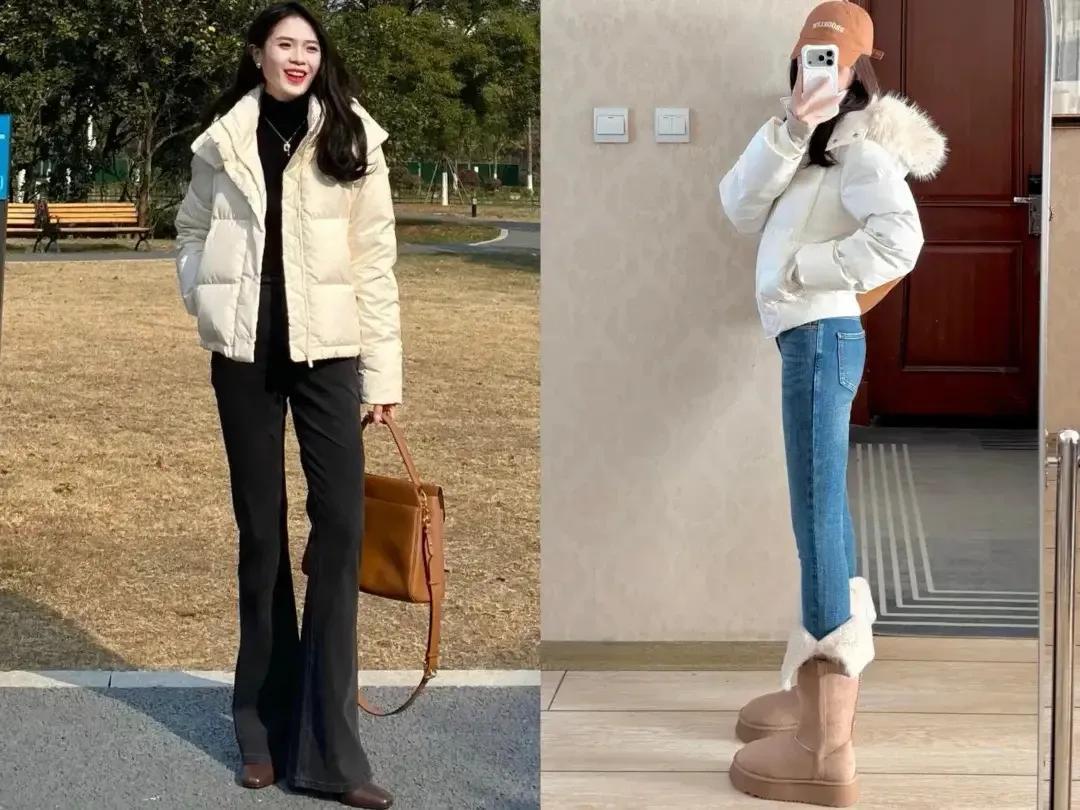 第一章节,怎么把羽绒服穿出高等感?次第①:上短下长搭配格式,让你显高显瘦
