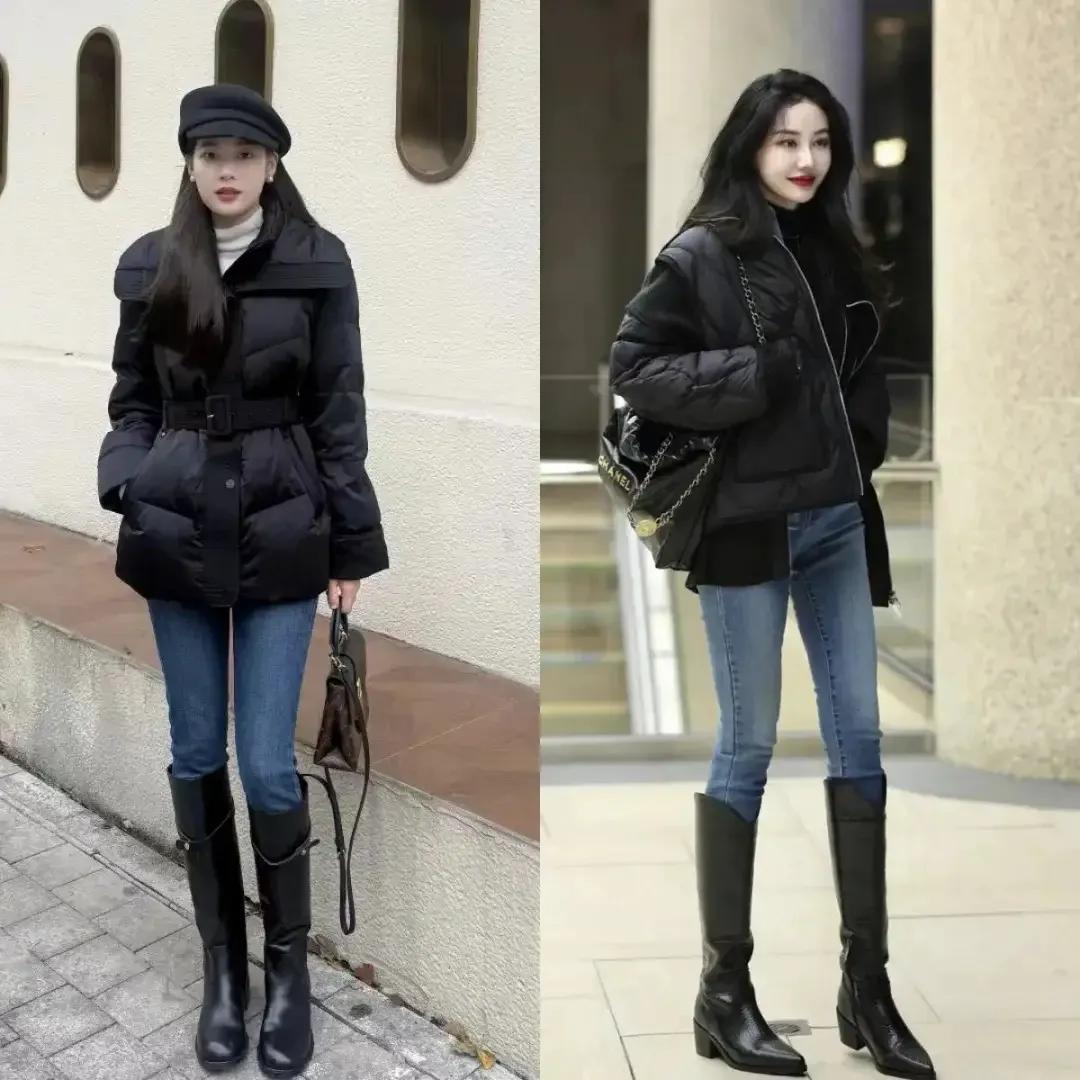 年事永久不是杂乱你变好意思的成分,独一你会搭配会穿搭,通常也不错变成文静精。举例上头这两位前卫达东说念主,就用了玄色的羽绒服搭配上蓝色的牛仔紧身裤,脚穿的是一对相比有质感的玄色中筒靴,这么的穿搭外出上班逛街,外出旅游拍照王人很出片,多礼又大方,好意思出新高度,既御寒又前卫。