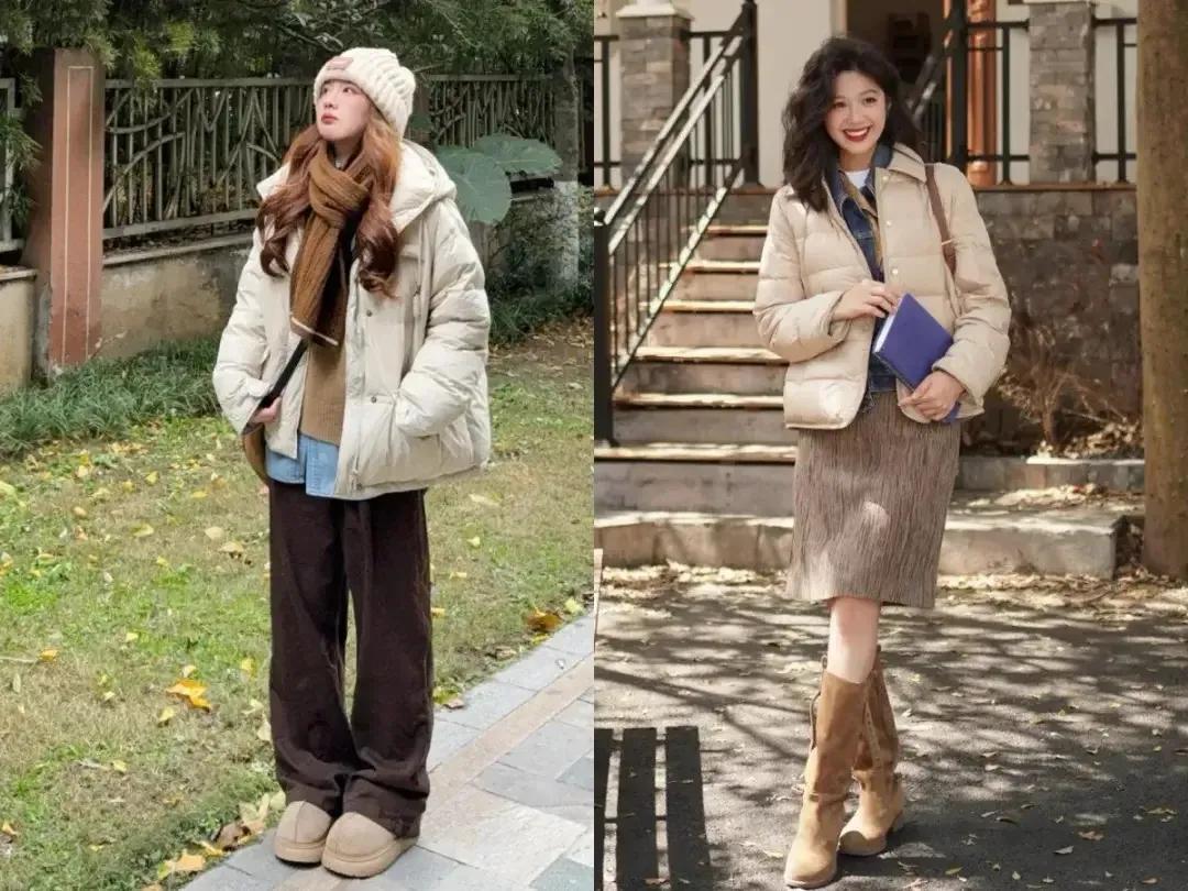 第四章节,羽绒服搭配裙子,让你优雅多礼Tips①:直筒裤 VS 裙子