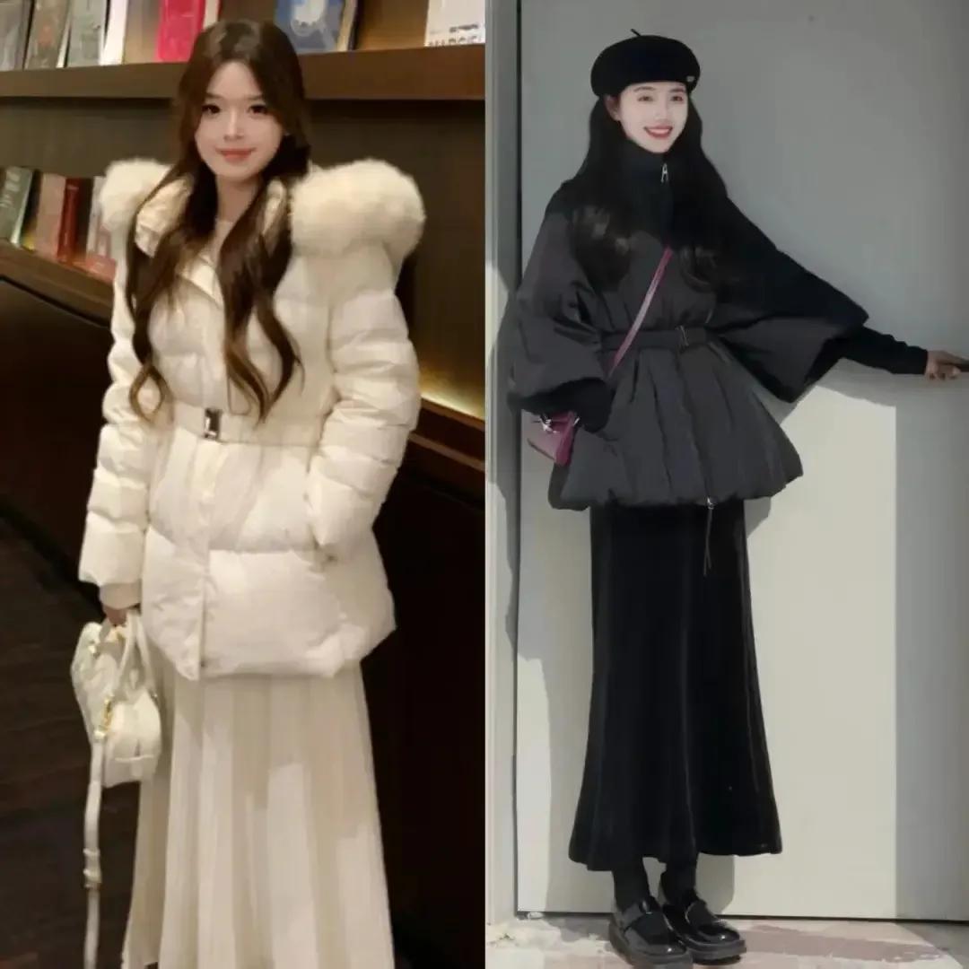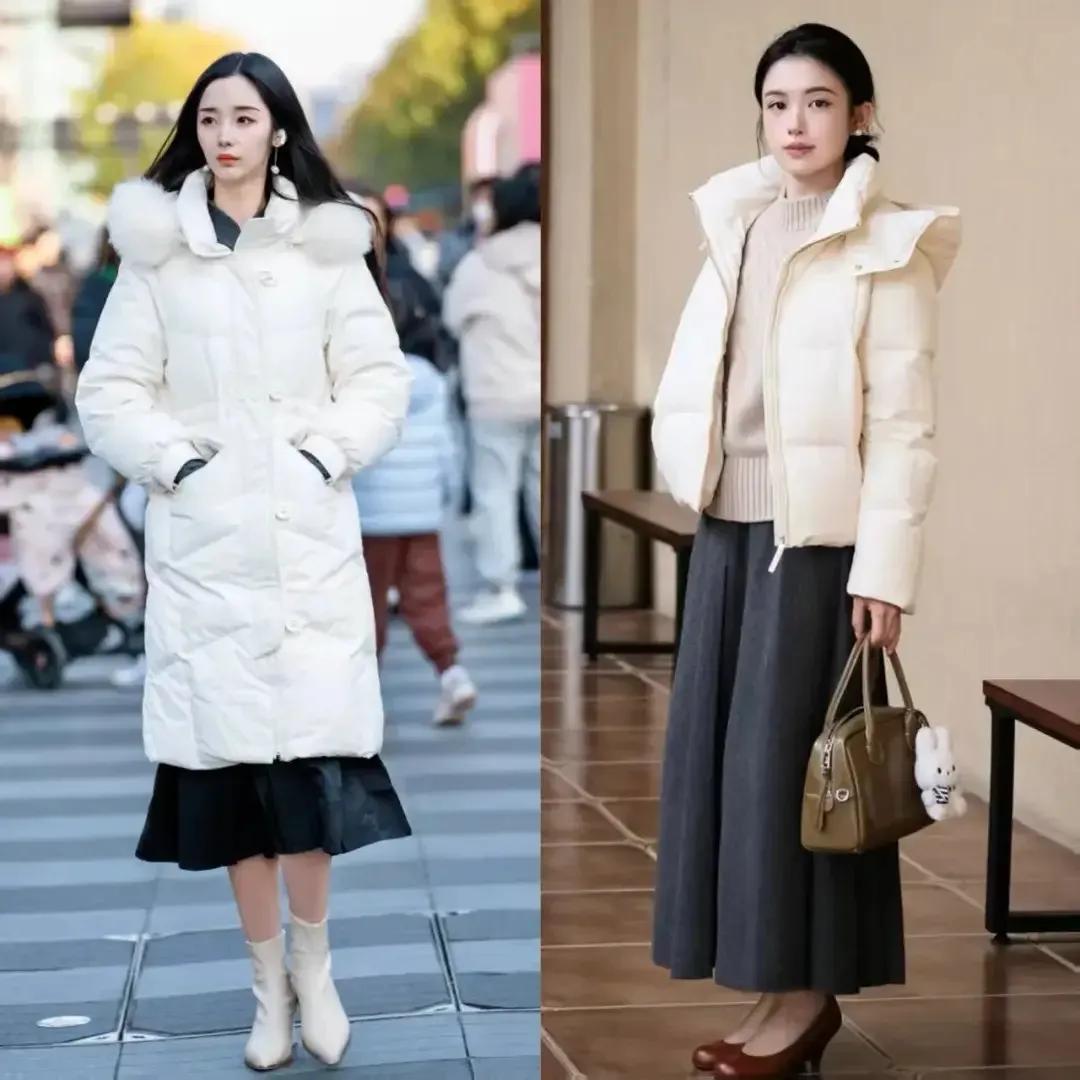 通常是最为百搭的白色羽绒服,长款的羽绒服和短款的羽绒服穿搭已经有点离别,要是思要裹着穿,不错采取长款羽绒服搭配玄色的半身裙,独一穿短靴就能使得你的躯壳变得很畅达,高挑纤瘦。